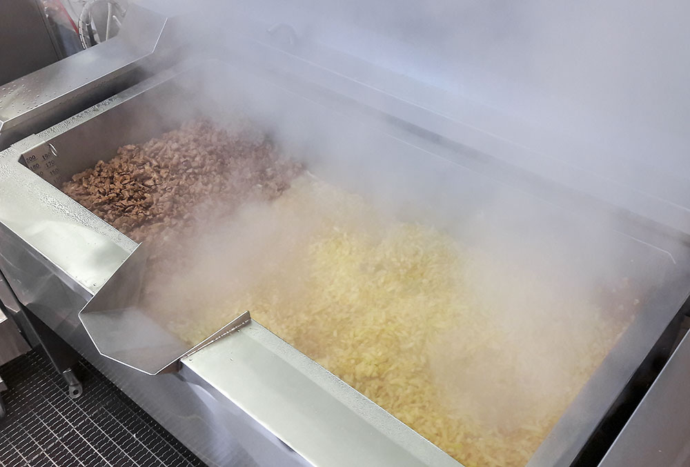 Our solutions integrate seamlessly to ensure optimal production. Large batch production concept including combi kettles, hot-fill pumps and sous vide basins adjusts to production method chosen.