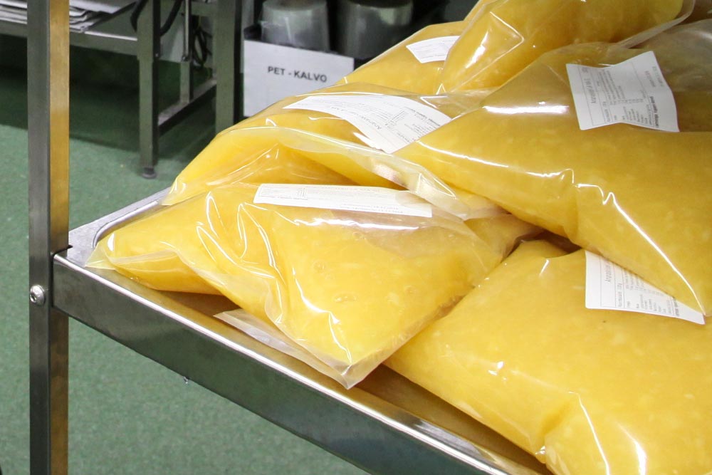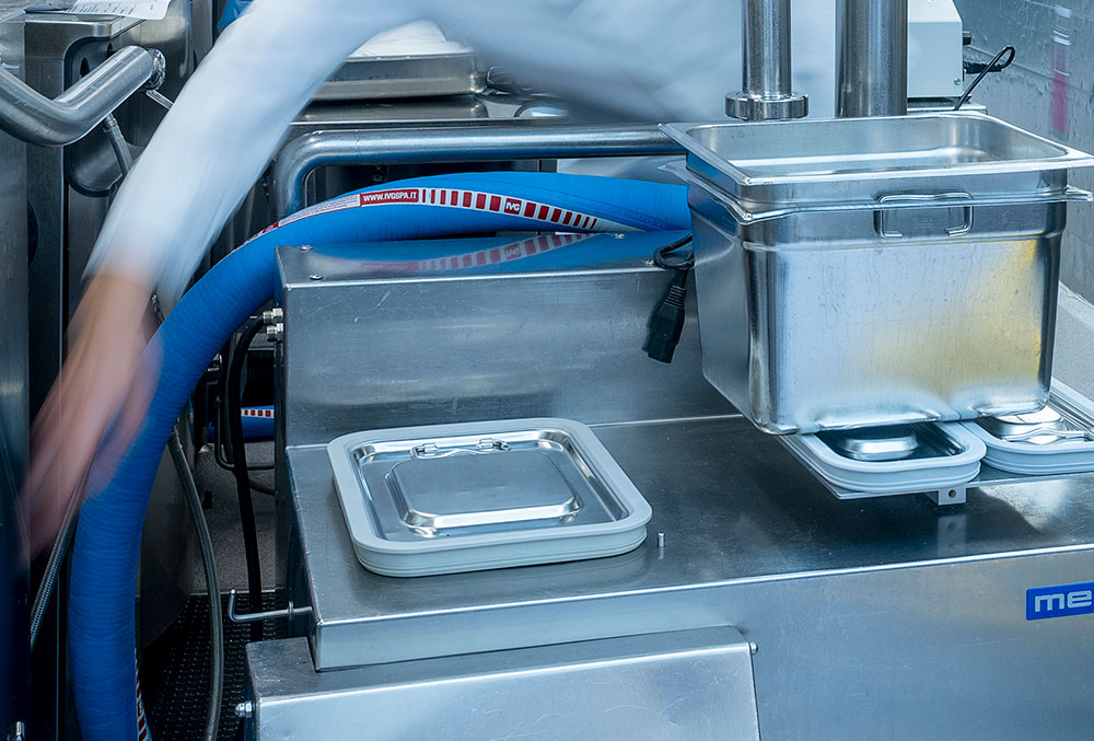 Sealed bags are chilled and then stored for up to a month before use. The transfer can be done in big batches at suitable time. Ease of production and of logistic management is the result of cook and chill production method.