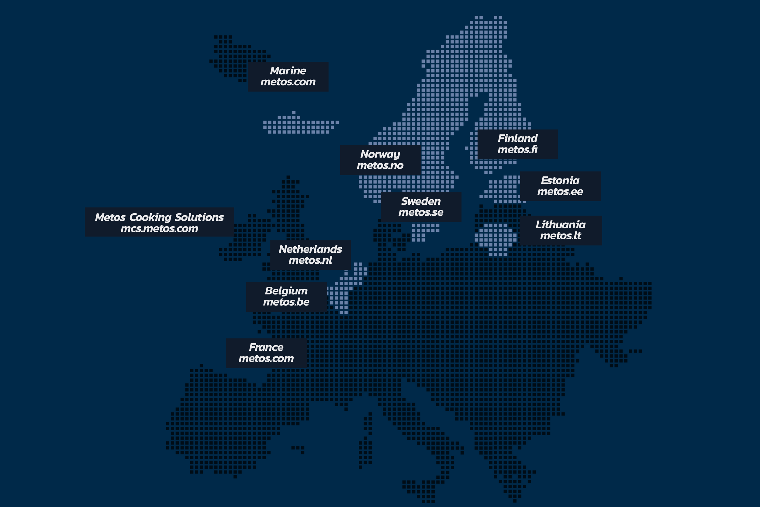 Metos is the only European company in the professional kitchen industry that can offer comprehensive services in eight countries. In addition to Finland, Metos Kitchen Solutions operates in Sweden, Norway, Estonia, Lithuaniathe, Netherlands and Belgium. We also serve in France. The operations of the Metos Cooking Solutions business unit focus on serving and developing large production kitchens internationally. The Metos Cooking Solutions distributor network covers the entire world, with an emphasis on Asia, among other areas.