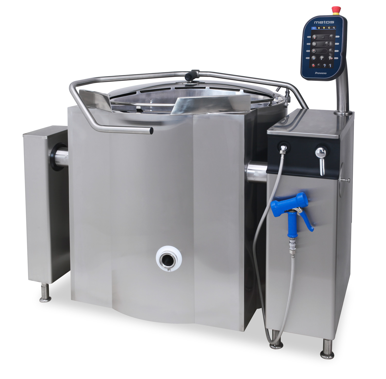 Metos Proveno has 9" digital control touchscreen, and every imaginable feature and program you can think of for production of liquid and semi liquid food – soups, sauces, stocks, curries, stews, mash potato etc. The kettle can heat, mix and has the option to chill down in the same machine. The kettle can be tailored to customer’s specific needs. The kettle can also be used to mix cold food, as it does not have to heat up in order to function. The Diagaomix system allows the Proveno to mix at a 90° angle, like a cement mixer. The kettle bowl can also be chilled with cold water during this process.