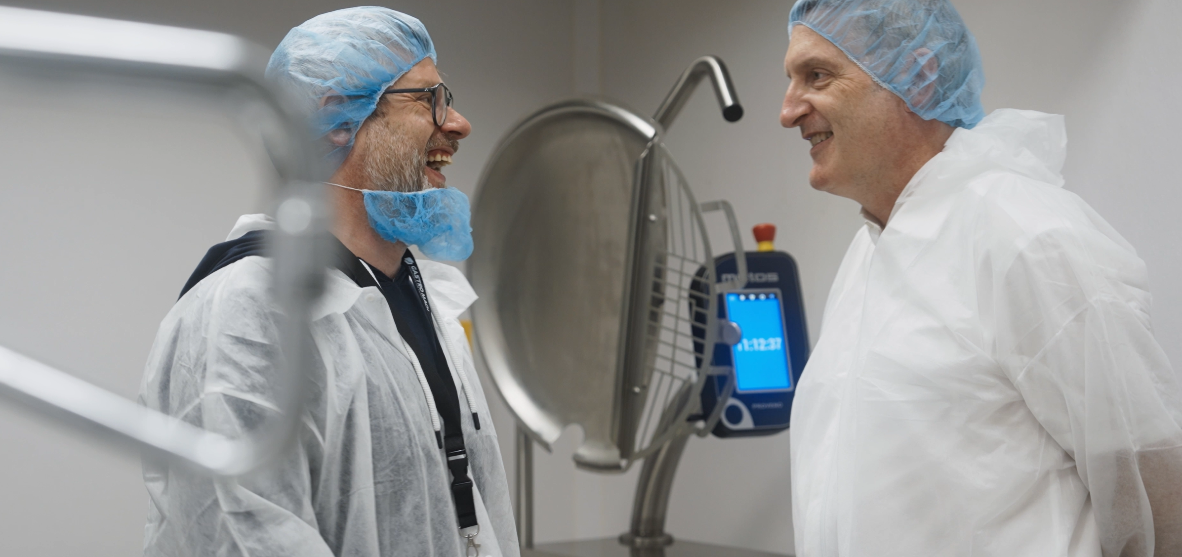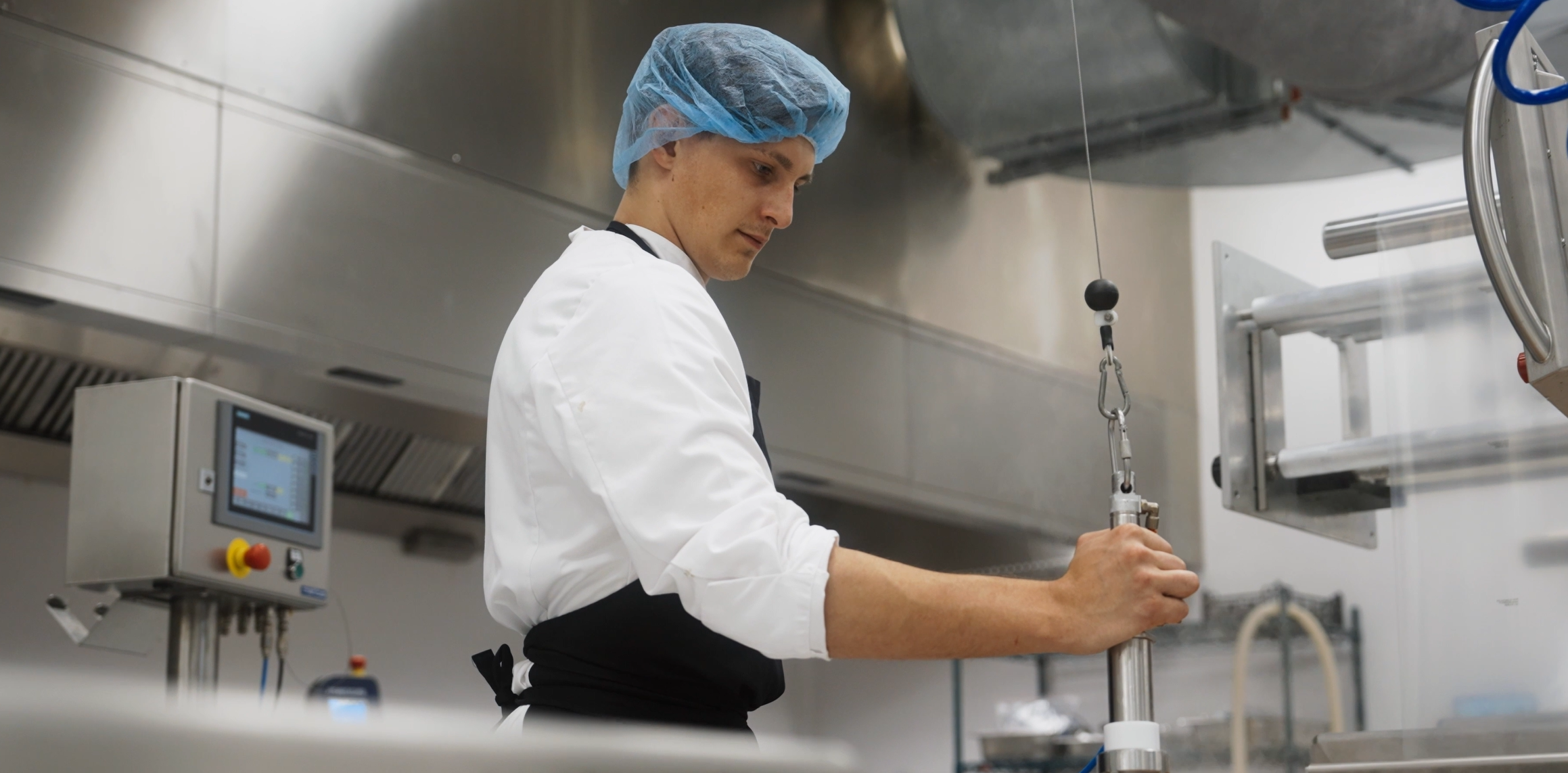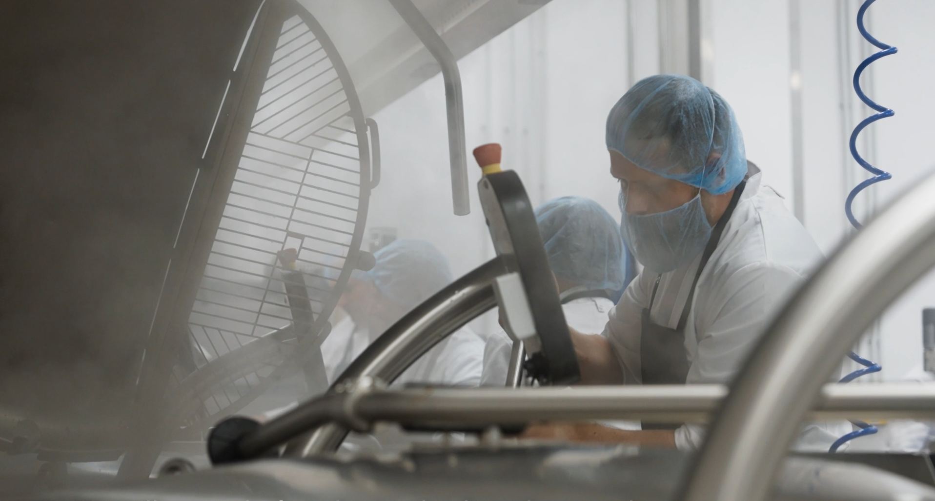 At the core of their kitchen is Scandinavian technology, made up of several machines set in a sequence. It all starts at the base, which they are making using the Mixpan bratt pan. It can produce 100 kg of base without the need for direct supervision.